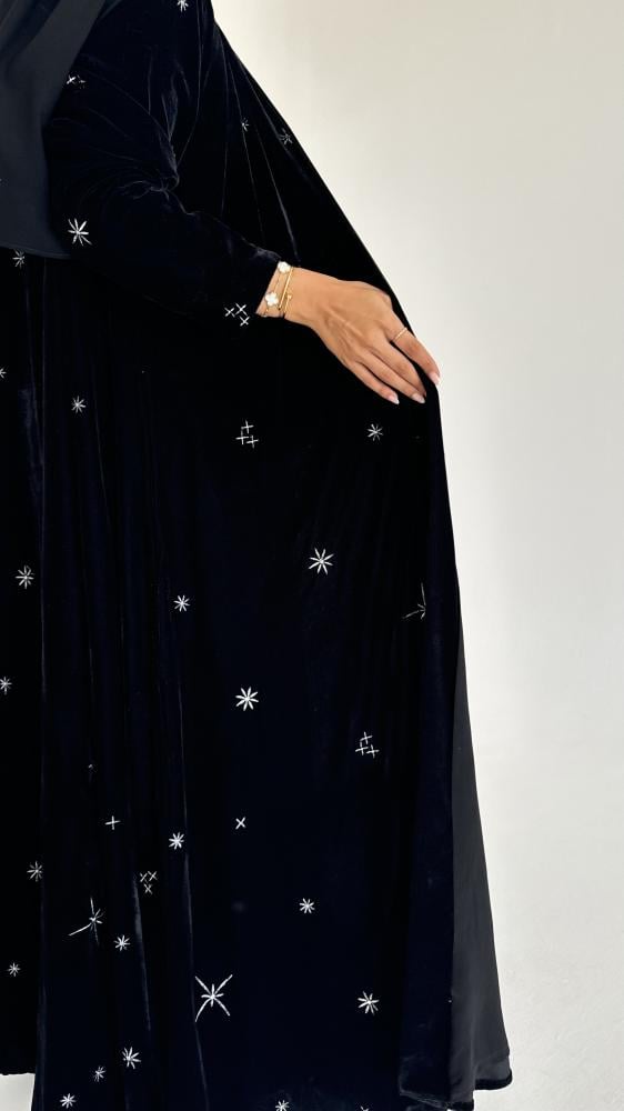 عبايه قصة نص كلوش بتطريز خاص لـ الـونـدرا لـايـن مع بطانه - طرحه شيفون بتطريز خاص لـ الـونـدرا لـايـن